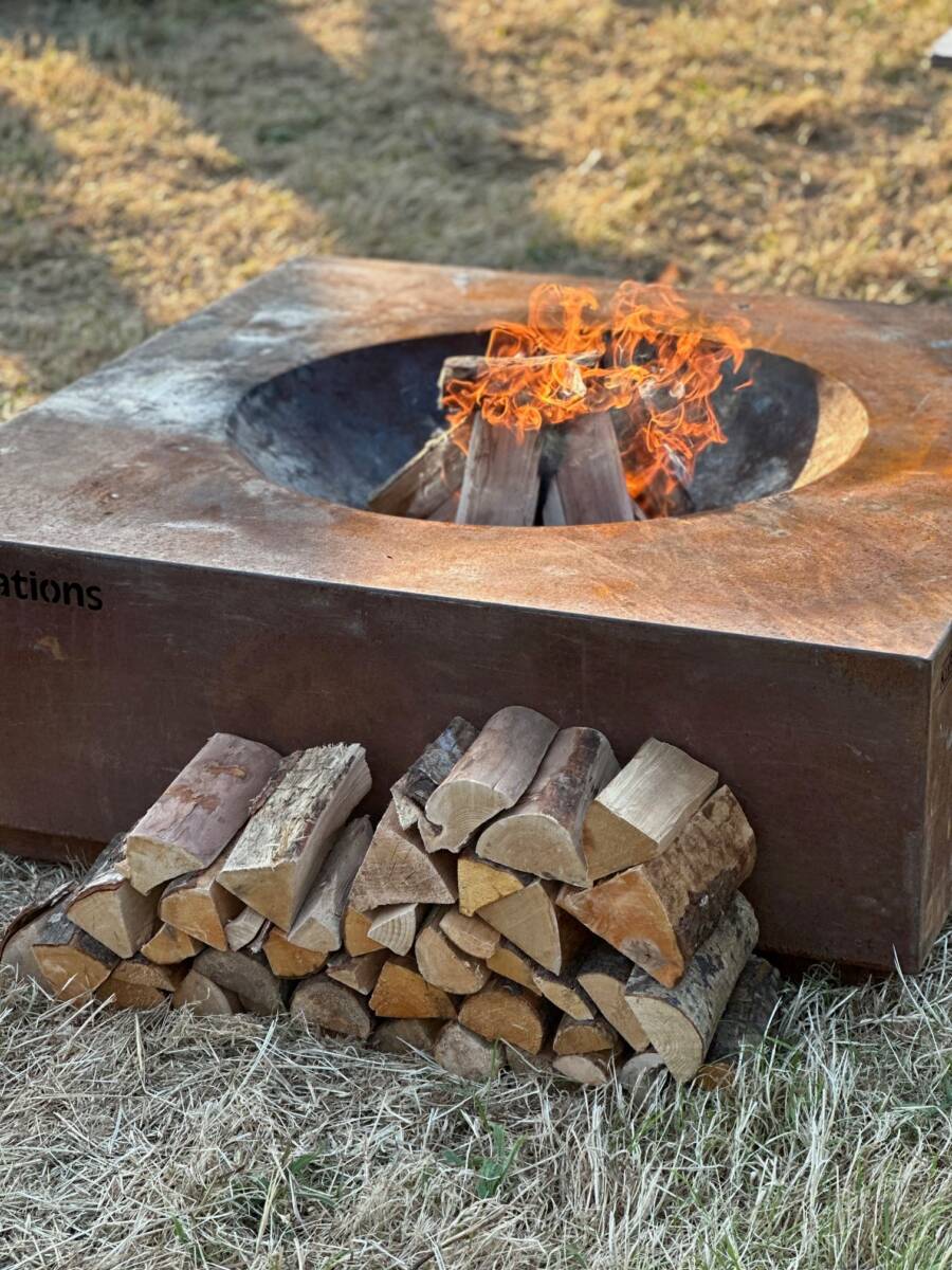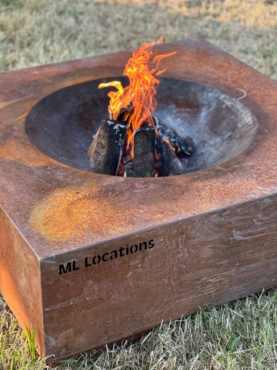 Rassemblez vous autour d’un feu sur ce braséro kubik en location, il est en acier corten d’une dimension de 125cmx125cm
